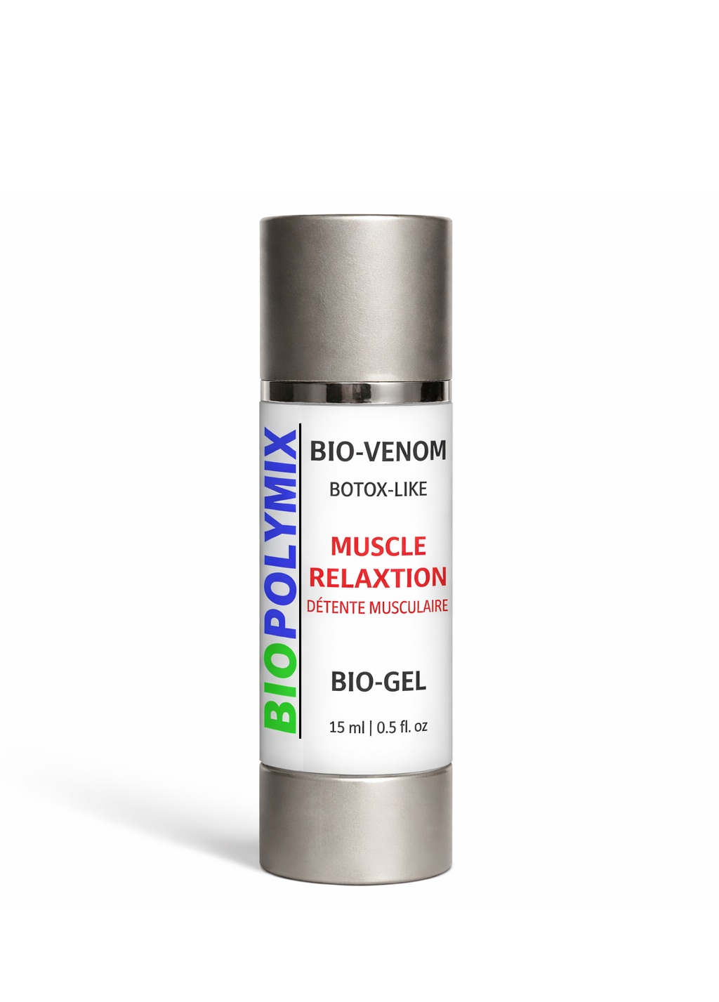 Biopolymix Bio-Venom Bio-Gel (BBVB) is an innovative skincare product based on snake-venom derived peptides with botox-like effect designed to visibly relax facial tension and soften expression lines on the face and neck. The formula combines biotechnological peptides, marine ferments, and therapeutic botanical extracts that help reduce the appearance of repetitive micro-muscle contractions responsible for dynamic wrinkles through supporting neuromuscular relaxation, deep hydration and skin regeneration. This is a next-generation topical muscle relaxation bio-gel promotes smoother, more relaxed, and youthful-looking skin. The peptide complex works by helping modulate the cosmetic appearance of nerve signals that trigger facial muscle contraction. It helps calm repetitive movements that contribute to expression lines on the forehead, around the eyes, mouth, and neck. The active compound is composed of a synthetic tripeptide (Syn-Ake) that replicates the effect of Waglerin 1, which is present in Temple Viper’s venom, supporting visible muscle relaxation.
